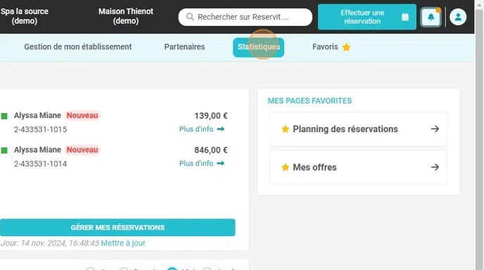 Accès au tableau de bord : Rendez-vous dans le menu "Statistiques" pour ouvrir votre centre de pilotage.