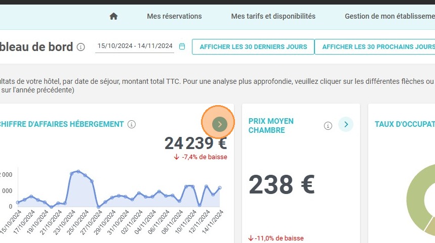 3. Cliquez sur la fenêtre ''Chiffre d'affaires hébergement''