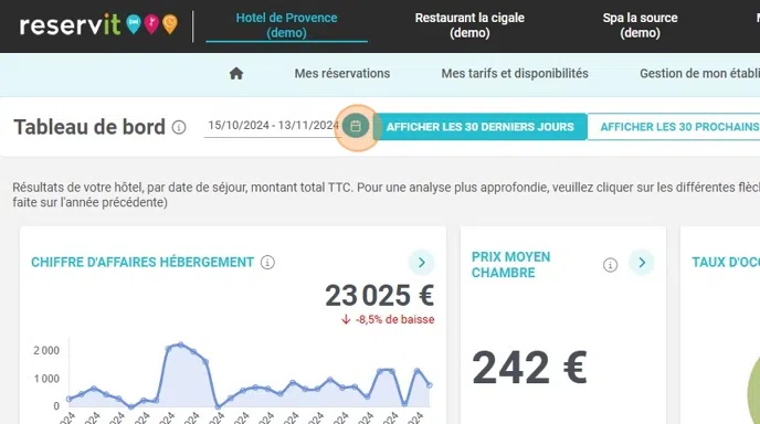 Résumé de l'article : Apprenez à piloter efficacement votre activité en consultant votre chiffre d'affaires hébergement directement depuis votre interface Reservit. Ce tutoriel vous guide dans l'utilisation du tableau de bord statistique pour extraire des données précises par période, par canal de vente ou par date de séjour. En maîtrisant ces outils de reporting, vous obtiendrez une vision claire de vos revenus et de vos performances commerciales.