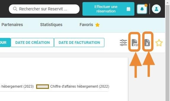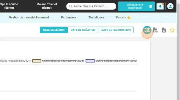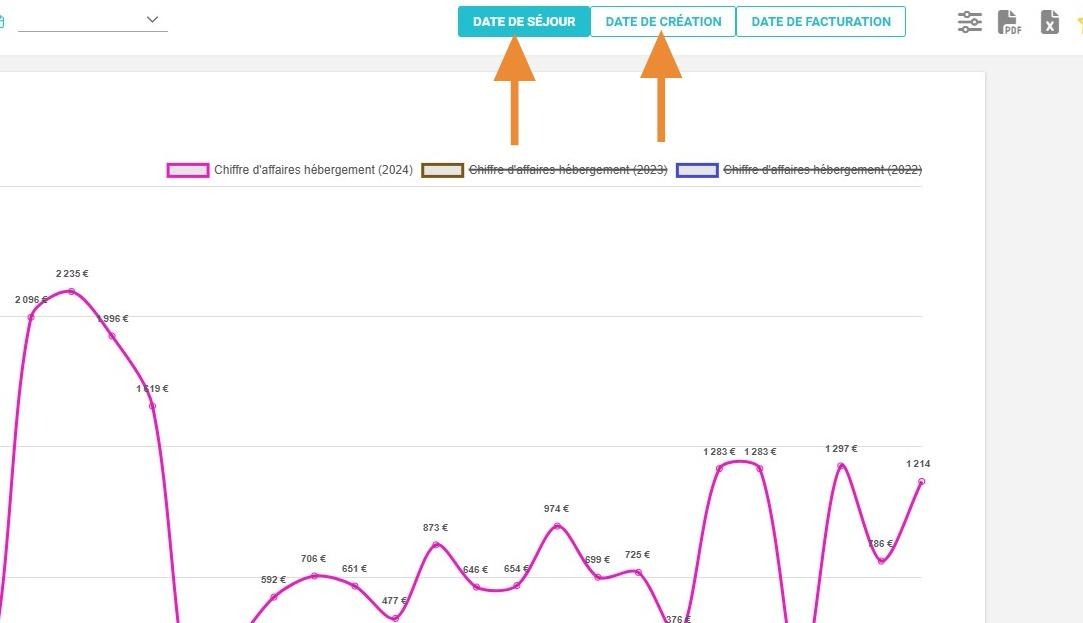 4. Avec ces deux boutons, vous pouvez sélectionner deux manières de calculer le chiffre d'affaires : par date de création, de réservation ou par date de séjour.