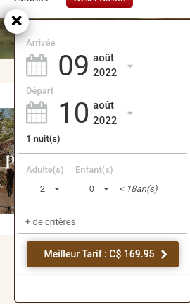 l’affichage en temps réel du meilleur prix en réservant sur le site aux dates demandées