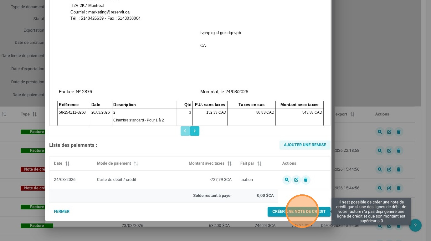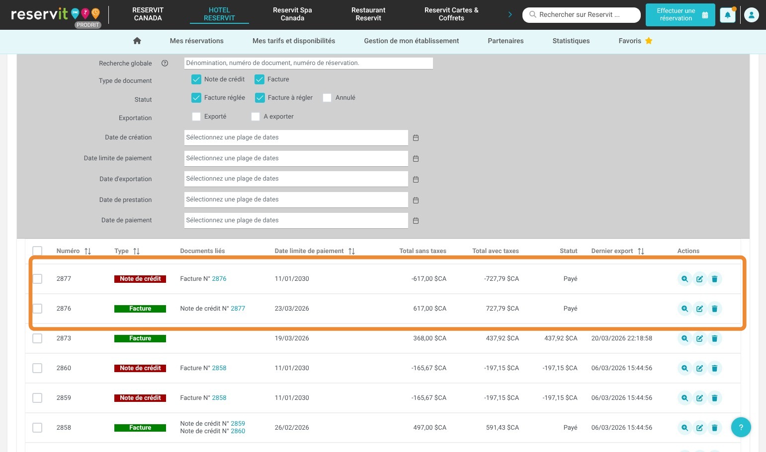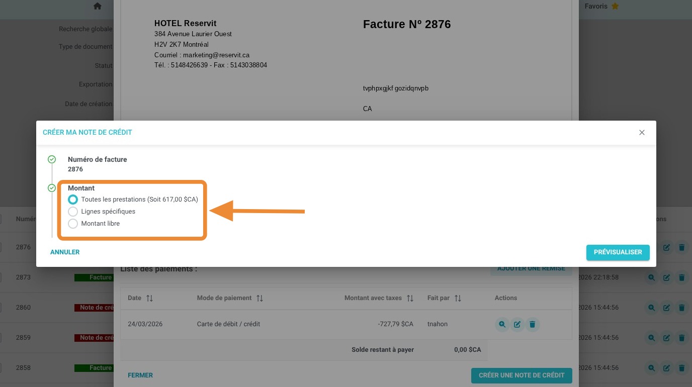 Comment créer un avoir ou une note de crédit pour rembourser une facture sur Reservit