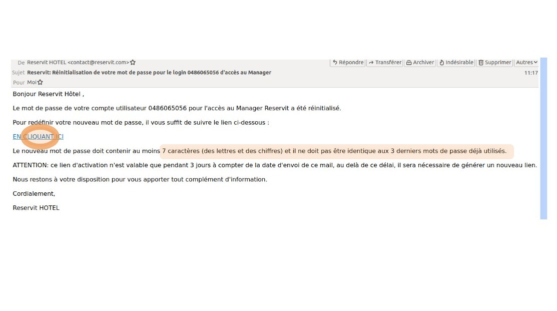 4. Vous avez reçu un email. Appuyez sur "En cliquant ici".